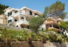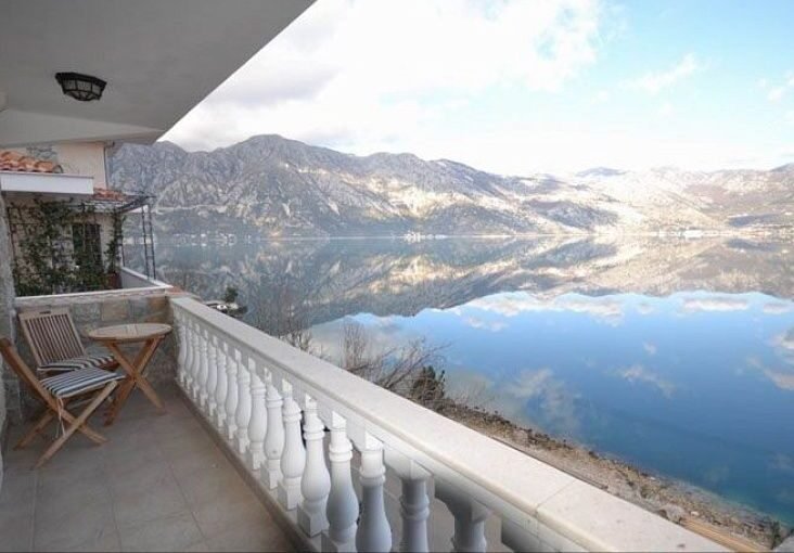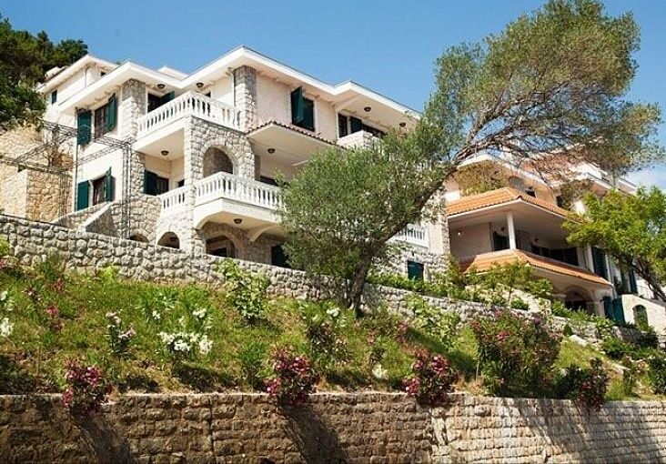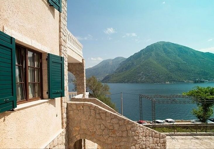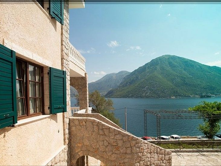 Прекрасная трехэтажная вилла площадью 235 м.кв. и участком 400 м2 на первой линии моря в Костанице. Расположена в жилом комплексе с панорамным видом на море, на первой линии от моря. Небольшой уютный комплекс расположен непосредственно на берегу Боко-Которской бухты. Расстояние до моря всего 20 метров. Планировка виллы совмещает в себе четыре просторные спальные комнаты, три санузла, большую гостиную со столовой, кухню, террасы с видом на море. Вилла меблирована. На территории комплекса есть свой бассейн. Придомовая территория утопает в цветах и зелени, за которыми ухаживает управляющая компания.