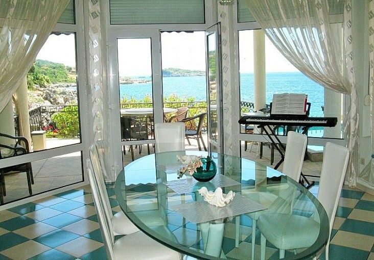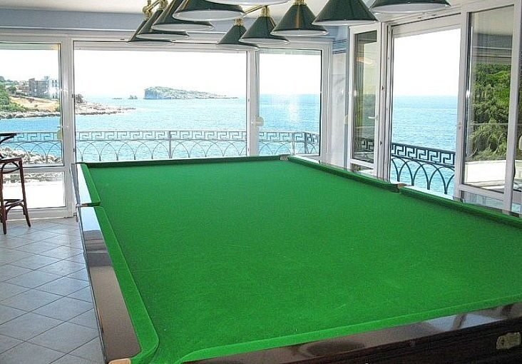Вилла у моря Утеха расположена всего в 10 метрах от Адриатического побережья и предлагает прямой доступ к морю. Дом находится в живописном посёлке Утеха, в 8 км от города Бар. Такое расположение обеспечивает тишину, чистое море и высокий уровень приватности. Вилла утопает в зелени и полностью огорожена каменной стеной с коваными элементами. Территория создаёт ощущение уединённого курорта. Дом состоит из основного жилого пространства и отдельного апартамента с собственным входом. Апартамент подходит для гостей или персонала и имеет кухню и террасу. На первом этаже расположены просторный зал с мраморным камином, современная кухня и обеденная зона. Панорамные окна открывают вид на море. Рядом находится уютный бассейн с подсветкой. Второй этаж включает главную спальню с выходом на террасу над морем, кабинет, дополнительную спальню и два санузла. Интерьер оформлен итальянской мебелью и подчёркивает статус объекта. Третий этаж используют как игровую зону с бильярдом и открытой террасой. При необходимости его легко переоборудовать под дополнительные спальни. Дом оснащён кондиционерами и системой водяного отопления. Также предусмотрены гараж и технические помещения. Вилла продаётся с мебелью и техникой.