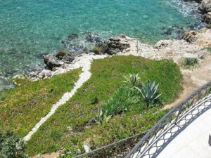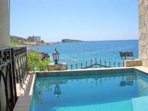 Эта роскошная вилла у моря расположена всего в 10 метрах от Адриатического побережья, в живописном посёлке Утеха, всего в 8 км от города Бар. Дом утопает в зелени и полностью огорожен каменной стеной с коваными элементами, обеспечивая комфорт и приватность.