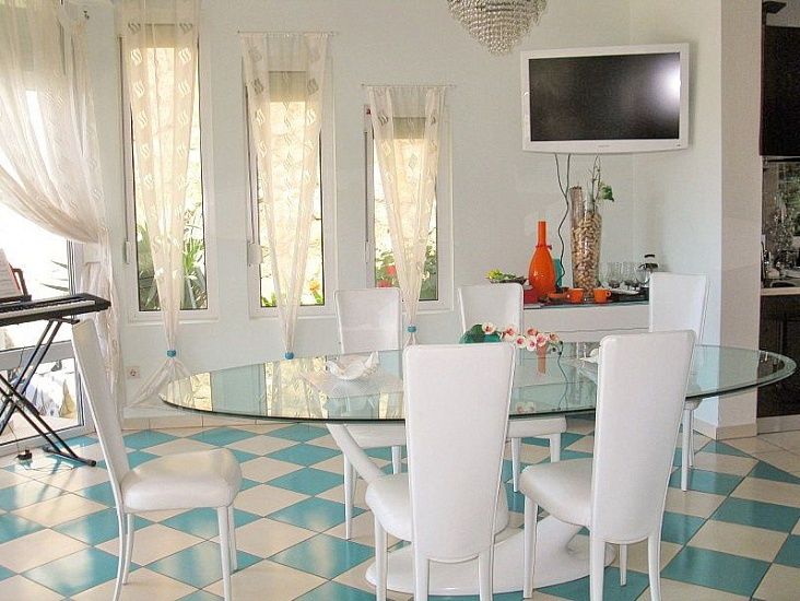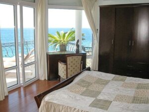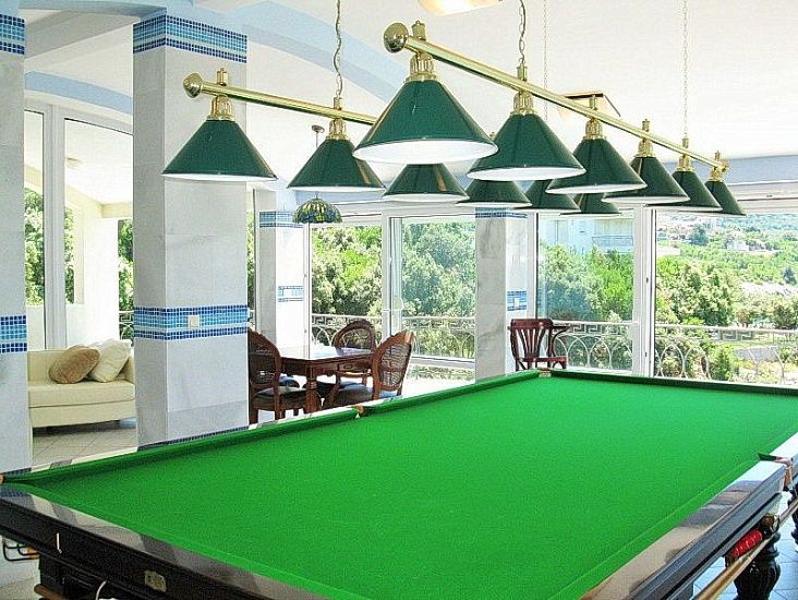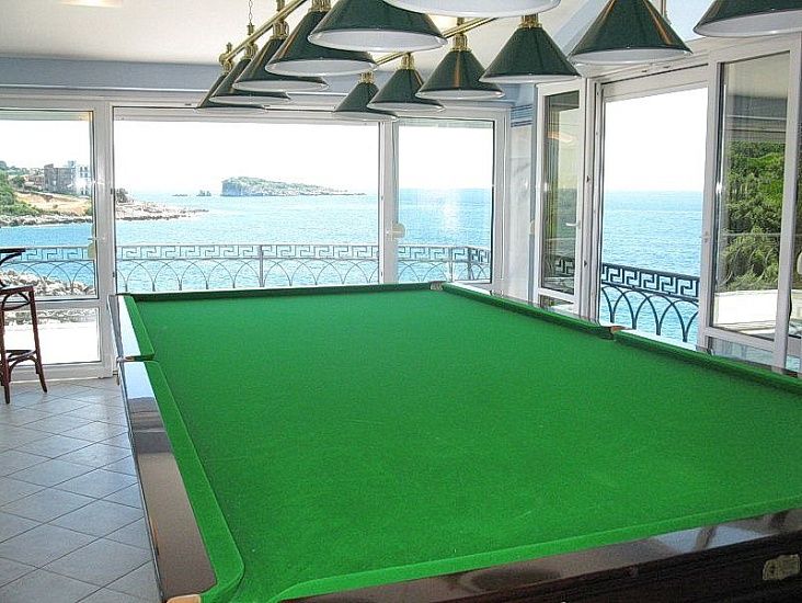 На втором этаже – главная спальня с выходом на террасу над морем, кабинет, дополнительная спальня и два санузла. Интерьер оформлен итальянской мебелью. Третий этаж можно использовать как игровую зону с бильярдом и террасой под открытым небом или переоборудовать под спальни.