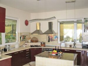 Дом полностью оснащён кондиционерами и системой водяного отопления, есть гараж и технические помещения. Продаётся с мебелью и оборудованием.