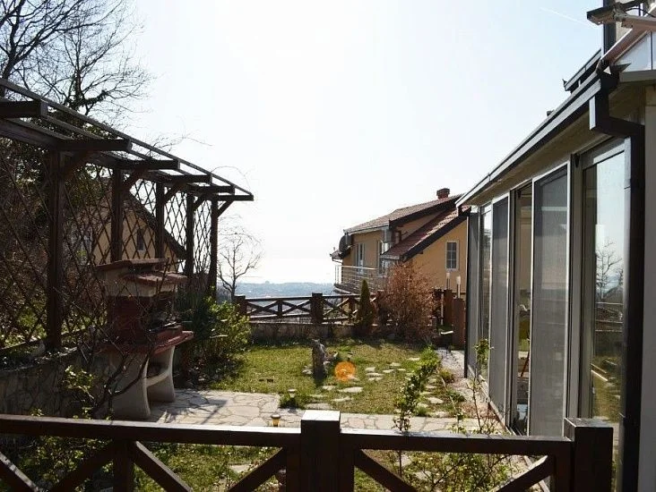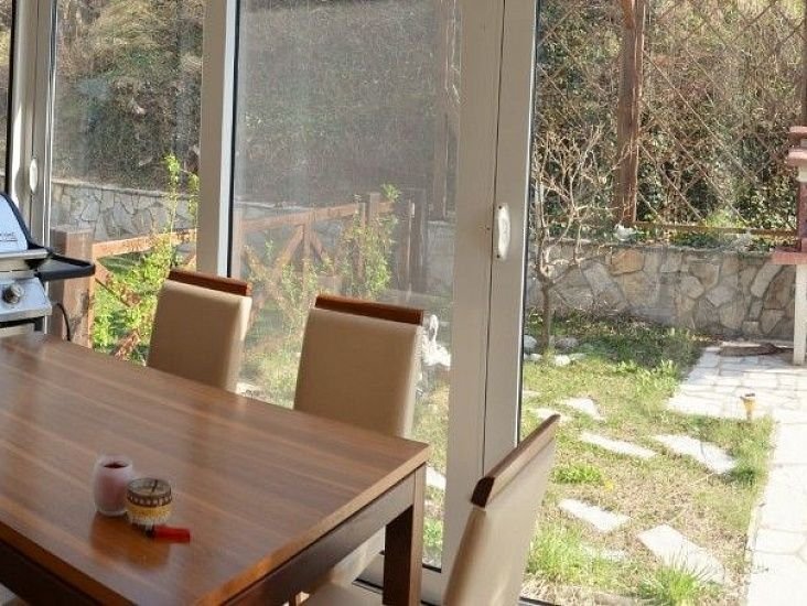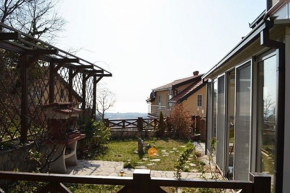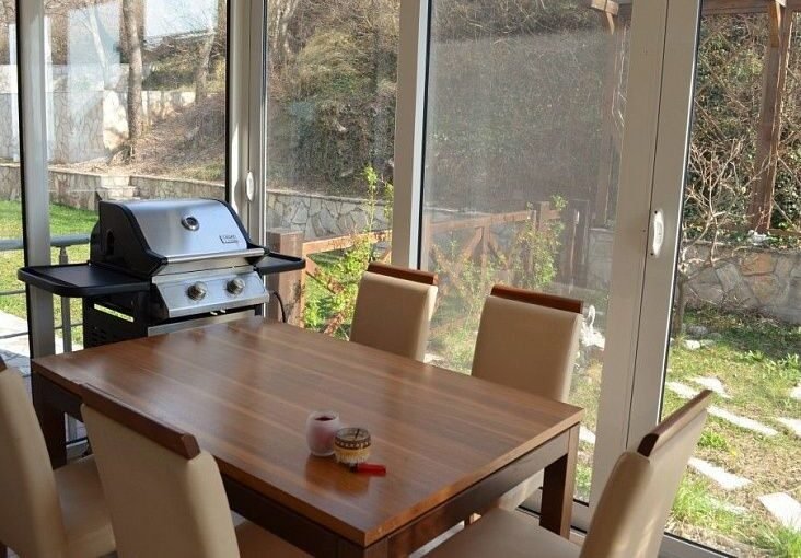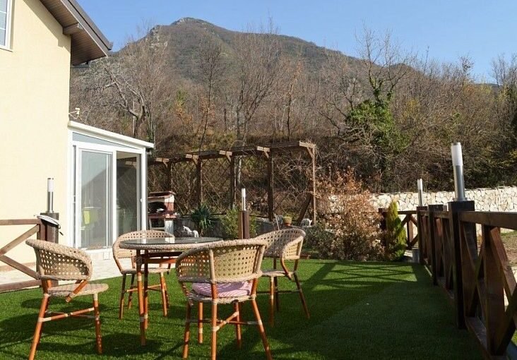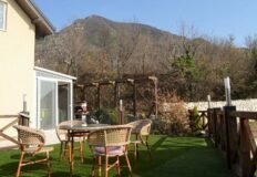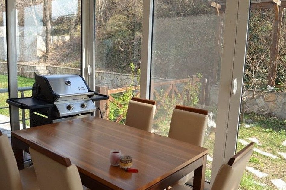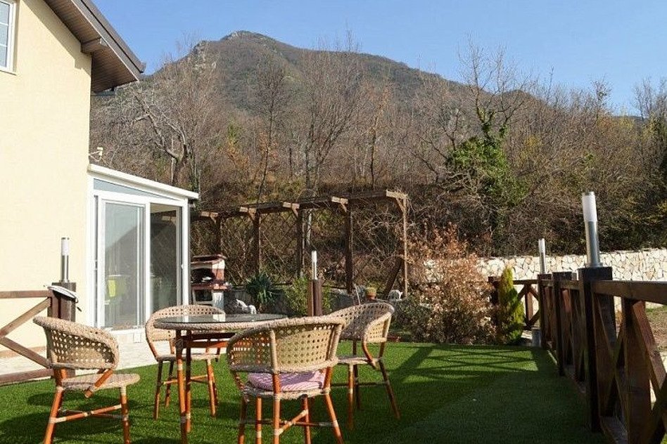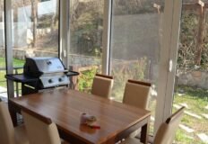 220 кв.м прилегающего земельного участка сопровождает гостиную, кухню и ванную комнату, расположенную на 2-м этаже. Имеются также две застекленные террасы.