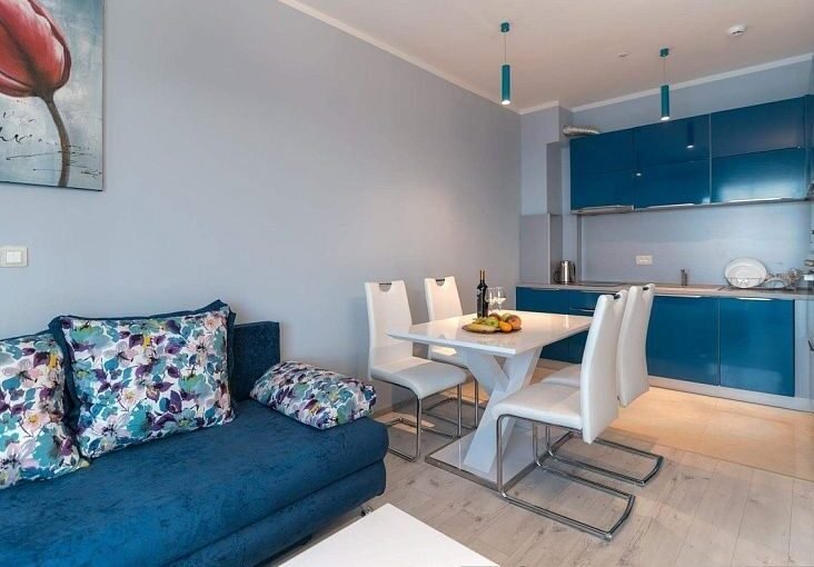 В продаже – квартиры и двухуровневые дуплексы площадью от 44 до 149 м² с двумя, тремя или четырьмя комнатами и просторными террасами. Все апартаменты полностью меблированы и оборудованы современной техникой: системой «умный дом», климат-контролем, спутниковым телевидением и интернетом. Интерьеры оформлены в премиальном стиле: плитка Marazzi, австрийский паркет, дубовые двери, шумоизоляционные окна и качественная сантехника.