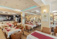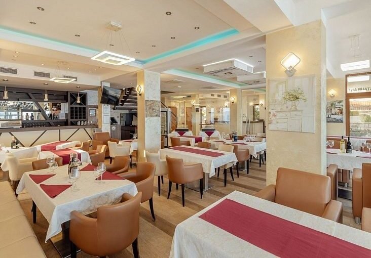 Отель располагает собственным рестораном на 40 посадочных мест с профессионально оборудованной кухней, рассчитанной на полноценную работу гостиничного бизнеса. Рядом находится открытая терраса на 30 гостей, барная зона, частная парковка и детская площадка. Кухня имеет отдельные помещения для хранения продуктов, кладовую, а также предусмотрены дополнительные складские помещения и комнаты для персонала.
