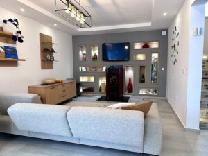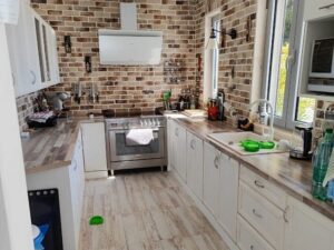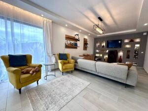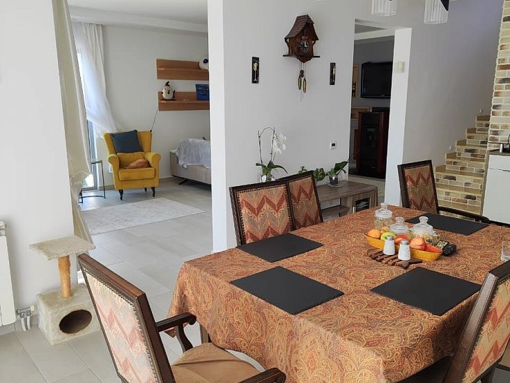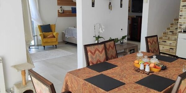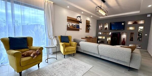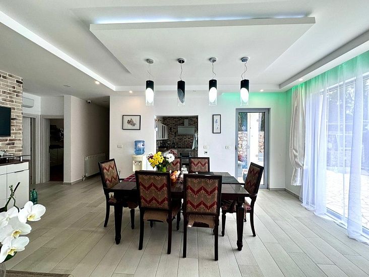 Двухэтажный дизайнерский дом площадью 200 м² в живописном и уединенном месте в Кримовице. В доме расположены гостиная, отдельная кухня, обеденная зона, санузел, три спальни с балконами и три ванные комнаты. В доме сделан качественный, дорогой ремонт с современной мебелью и техникой; во всех комнатах установлены сплит-системы кондиционирования, камин в гостиной и бойлеры в ванных комнатах. Дом имеет большую придомовую территорию с барбекю-зоной и замечательным ландшафтным дизайном. С террасы и балконов открывается панорамный вид на горы. Это прекрасное предложение как для постоянного проживания, так и для отдыха.