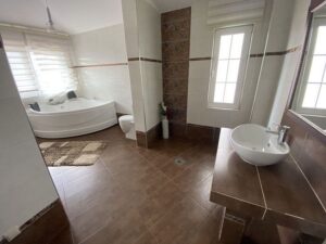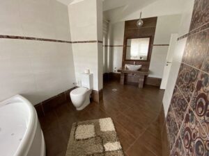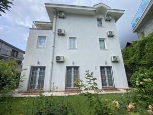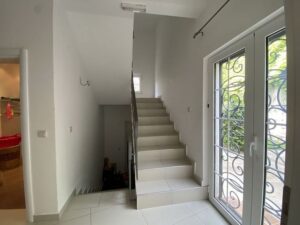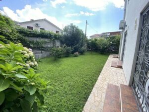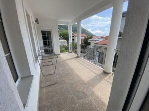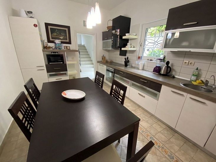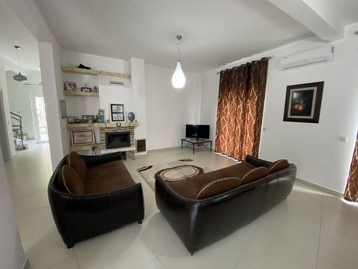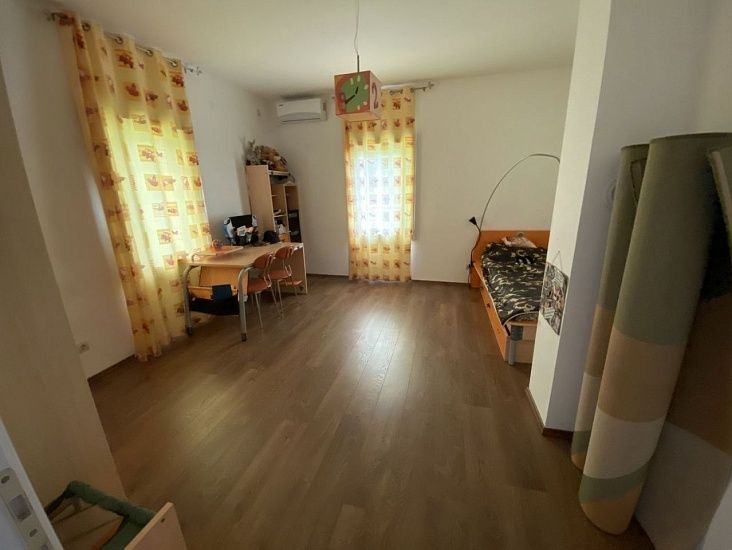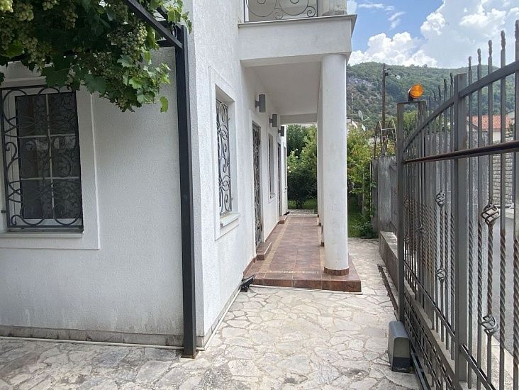 Двухэтажный дом в 1500 м от моря продается в районе Лази в Будве. Дом имеет площадь 303 м² и состоит из гостиной с камином, отдельной кухни с обеденной зоной, сауны, пяти спален, трех ванных комнат и нескольких кладовых. На каждом этаже есть терраса, откуда открывается вид на город, горы и море. Дом полностью меблирован и оборудован, включая кондиционеры, телевидение и Интернет. На огороженном участке есть свой ухоженный сад и площадка для барбекю, а также два парковочных места. В 2 минутах ходьбы от дома находится ближайший продуктовый магазин, а за 5-10 минут можно добраться до различных ресторанов, кафе, спортивного зала, автобусной остановки и других объектов.