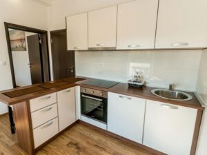 В поселке Радановичи, Котор, продается просторный двухэтажный дом, разделенный на 5 независимых апартаментов: 2 на первом этаже и 3 на втором. На первом этаже расположена двухкомнатная квартира площадью 80 м² и однокомнатная квартира площадью 50 м² с выходами на террасу. На втором этаже два однокомнатных апартамента площадью 50 и 40 м², а также квартира-студия площадью 30 м², балконы с видом на красивый сад и горы. Планировка дома позволяет объединить квартиры и создать два больших жилых помещения площадью 120 м² и 130 м². Имеется разрешение на строительство высокого чердака. Дом оборудован новой мебелью, современной техникой, кондиционерами, на участке расположена парковка. Четыре квартиры регулярно сдаются в аренду со средним годовым доходом 15-20 тыс. евро. Недалеко от дома находится несколько продуктовых магазинов, рестораны и пляжные зоны. Расстояние до центра Тивата и Котора составляет около 7 км, а до Будвы – 15 км.