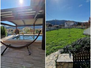 Дом с бассейном находится в селе Полье, всего в 4 км от города Бара. Дом занимает просторный участок площадью 1800 м² с красивым ухоженным садом, где вы найдете туи, пальмы, хурму, мандариновые и апельсиновые деревья, лимоны, гранат, а также киви и виноградные лозы, создающие уникальную атмосферу. На территории под навесами расположены бассейн с джакузи и отделанная камнем зона отдыха с барбекю, идеальная для уютного отдыха с семьей и друзьями по вечерам. Дом имеет два этажа и продается полностью меблированным и оборудованным. На первом этаже размещены гараж, гостиная и кухня открытой планировки, санузел, а на втором этаже три спальни и две ванные комнаты. К дому подведены городское водоснабжение, электричество, установлен колодец и септик. В 2018 году производился ремонт. Рядом продается участок площадью 2344м².