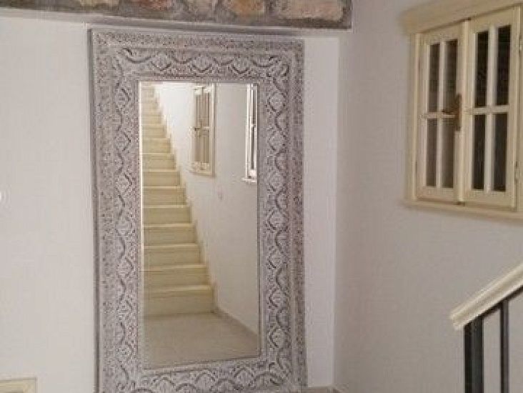 Также на первом этаже находится гостиная с камином из мрамора, из которой можно выйти на большую крытую террасу. Кухня расположена в отдельном помещении. Есть санузел.