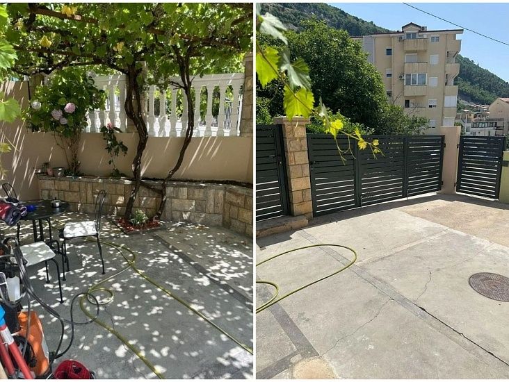Двухэтажный семейный дом находится в тихом районе Подкошлюн в Будве, имеет жилую площадью 230 м² и участок площадью 300 м². Дом был полностью отремонтирован в 2023 году и продается меблированным и оборудованным, в том числе кондиционерами в каждой комнате. В доме расположены гостиная с кухней и обеденной зоной, четыре спальни, две ванные комнаты и подвал. С балконов открывается вид на город и горы. Вся территория дома огорожена, на участке есть небольшой сад, зона для отдыха и собственный гараж. Рядом с домом имеются все необходимые объекты инфраструктуры, такие как магазины, кафе, рестораны и др., а также пляж в 10 минутах ходьбы. Все документы в порядке, есть возможность модернизации дома.