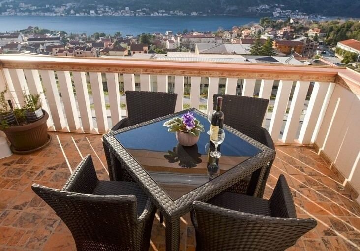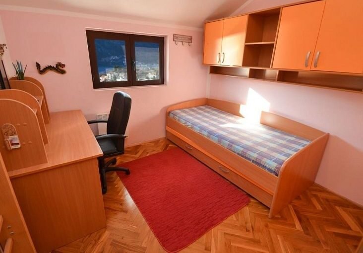 Двухуровневая четырехкомнатная квартира на берегу Бока-Которской бухты, в рыбацком поселке Доброте. Находится на последнем этаже жилого дома и открывает прекрасный вид на горы и залив. В здании нет лифта, но доступны бесплатные парковочные места или гараж за дополнительную плату. На первом уровне квартиры расположены гостиная с обеденной зоной и террасой, отдельная кухня, две спальни, ванная комната и санузел. На втором уровне спальня и ванная комната. Квартира продается полностью меблированной и оборудованной. Поблизости есть рынок, супермаркет, спортзал, школы, пекарня, кафе и рестораны, а до города Котора можно добраться за 10 минут (2 км).