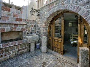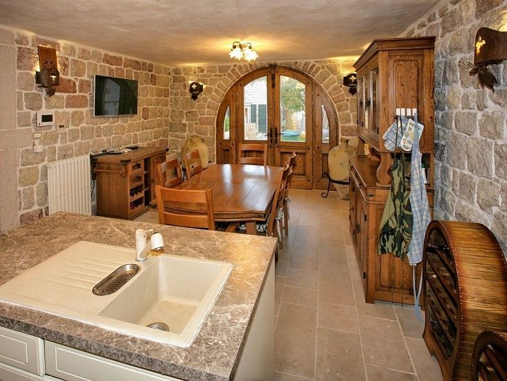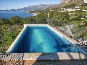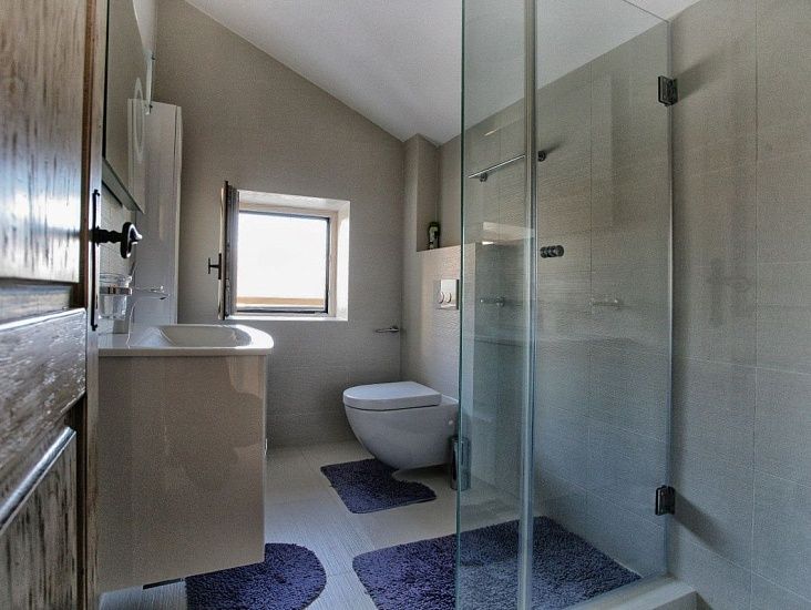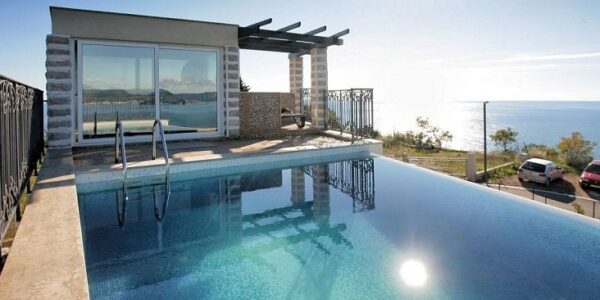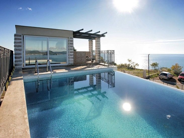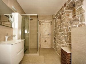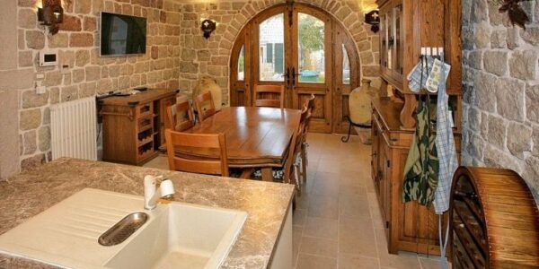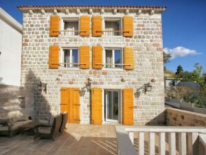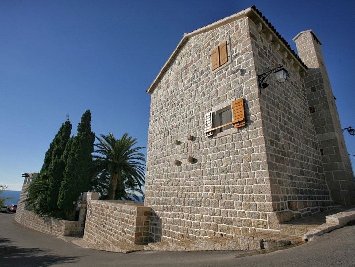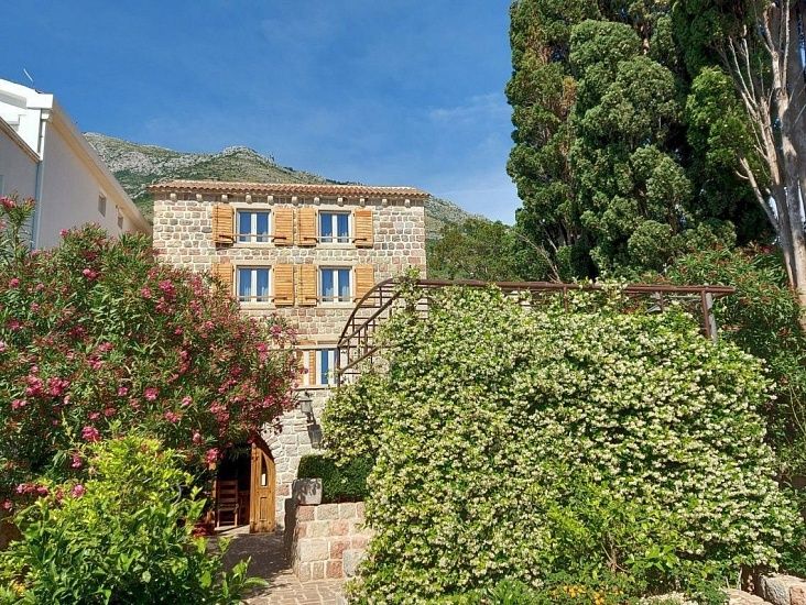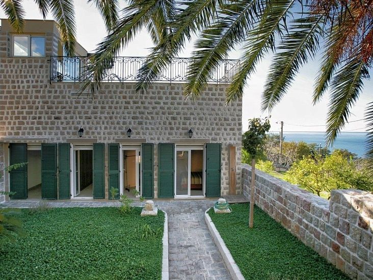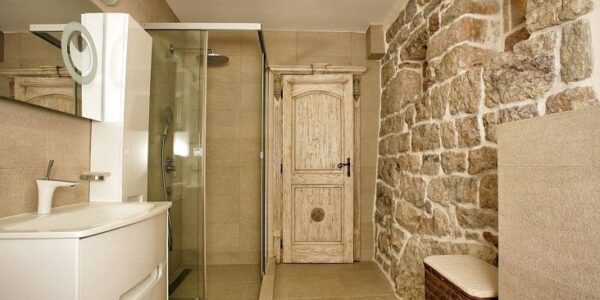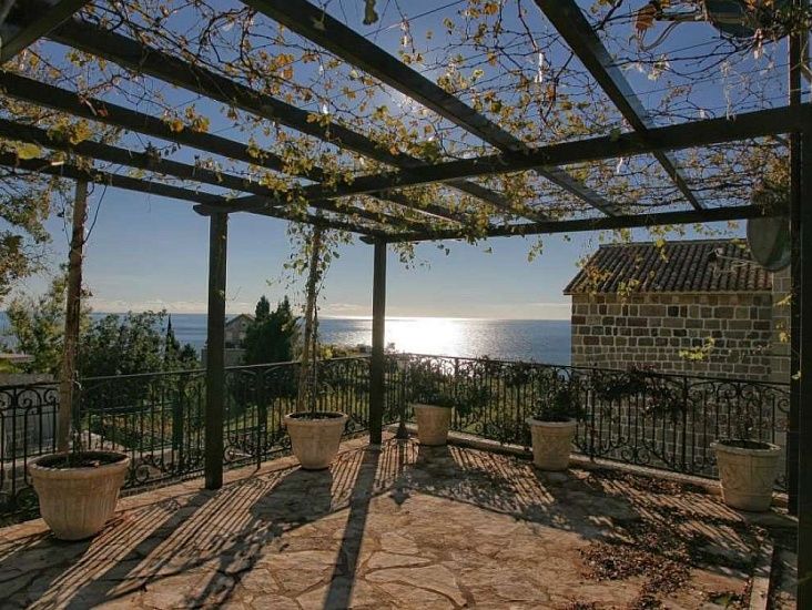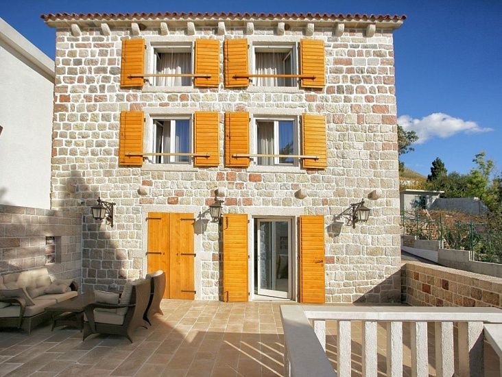 Большая каменная вилла с видом на море находится недалеко от Режевичей, в населенном пункте Крстац, Скочиджевойка. Была полностью отремонтирована в 2013 году с использованием натуральных материалов, обставлена качественной импортной мебелью и техникой. Вилла состоит из главного здания и двух вспомогательных помещений: гостевого дома площадью 150 м² и гаража с беседкой. Главное здание имеет четыре этажа: на первом расположены кухня, столовая, ванная комната, техническое помещение и гостиная, весь второй этаж занимает большая гостиная с выходом на террасу, третий этаж включает одну спальню и ванную комнату, а четвертый две спальни и ванную комнату. Внутренний двор состоит из живописного сада с многообразными деревьями и кустарниками, в том числе цитрусовыми, зоны барбекю и зоны отдыха. В гостевом доме с бассейном на крыше находятся тех.помещение, винная комната, две спальни и ванная. Расстояние до моря составляет 150 м. Рядом также есть открытая парковка.