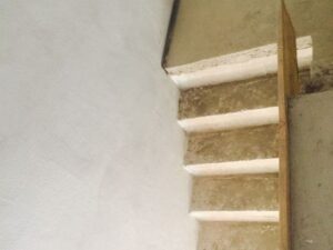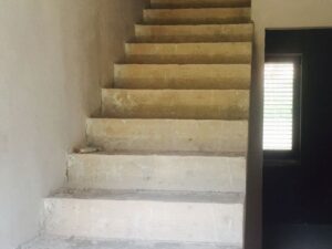 На первом этаже: прихожая, гостиная, совмещенная с кухней и обеденной, камин, ванная комната.