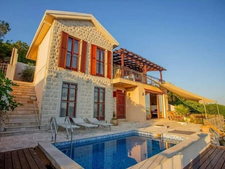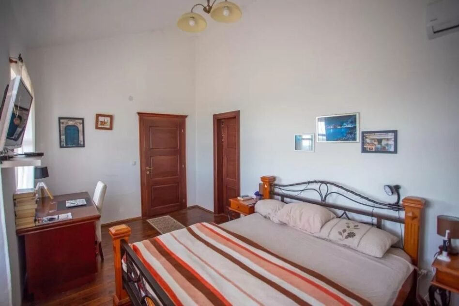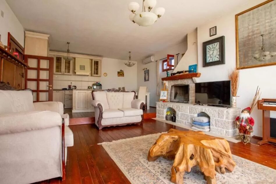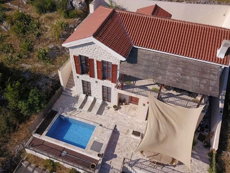 Каменная вилла Загора расположена в уединённом и живописном месте, среди природы и традиционной застройки. Дом стоит на участке площадью 426 м2 и предлагает высокий уровень приватности. Такое расположение подойдёт для спокойного проживания и отдыха вдали от шума курортных зон. Вилла имеет два этажа и собственный бассейн. Планировка удобна и функциональна. На первом уровне находится гостиная с камином, объединённая с кухней и столовой. Из гостиной есть прямой выход на просторную террасу с зоной отдыха и площадкой для барбекю. Это пространство идеально подходит для приёма гостей и семейных вечеров. На втором этаже расположены четыре спальни. Каждая спальня имеет собственную ванную комнату. Одна из комнат оборудована как детская. С верхнего этажа есть выход на террасу меньшего размера. С неё открываются виды на море и живописные пейзажи деревни Загора.Вилла продаётся полностью меблированной и оснащённой всем необходимым. В доме установлены кондиционеры, спутниковое телевидение и прачечная. Перед домом предусмотрены парковочные места на два а втомобиля. Море – примерно в 1,5 км, ближайший пляж в 5 км. До города Будва – 11 км, до Котор – 25 км. Дополнительно рядом с виллой продаётся участок площадью 4550 м², что увеличивает инвестиционную привлекательность объекта.