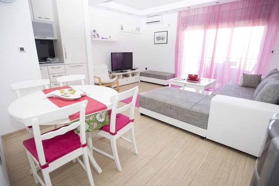 Квартира расположена в Пржно — спокойном и уютном районе с потрясающим видом на Адриатическое море. Жилье полностью отремонтировано в современном стиле, обставлено мебелью и укомплектовано всем необходимым для комфортного проживания. Внутреннее пространство включает светлую гостиную, функциональную кухню, уютную спальню и две ванные комнаты. Общая площадь — 55 кв.м, а до моря всего 500 метров. Это отличное место для уединённого отдыха и восстановления после насыщенных будней.