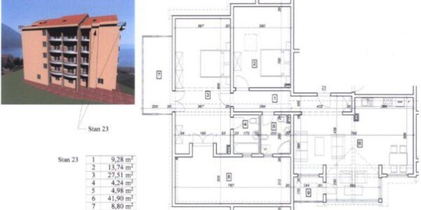 Вашему вниманию представляем трехкомнатную квартиру в Бечичи общей площадью 136 м2. Квартира расположена на шестом этаже шестиэтажного дома.