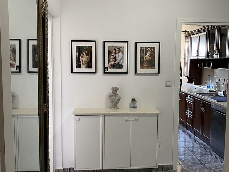 Квартира состоит из большой прихожей, кухни, столовой, кладовой, гостиной, трех спален, ванной комнаты с туалетом и дополнительного туалета. В квартире есть две большие террасы и подвал. В непосредственной близости расположена большая парковка принадлежащая зданию.