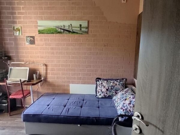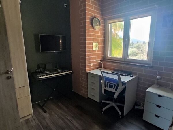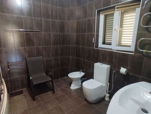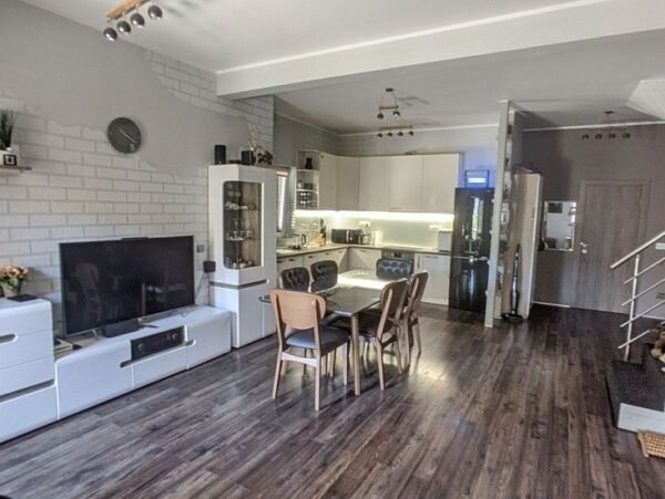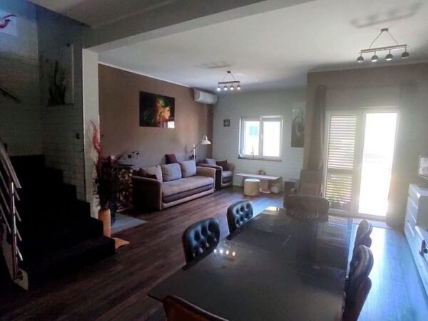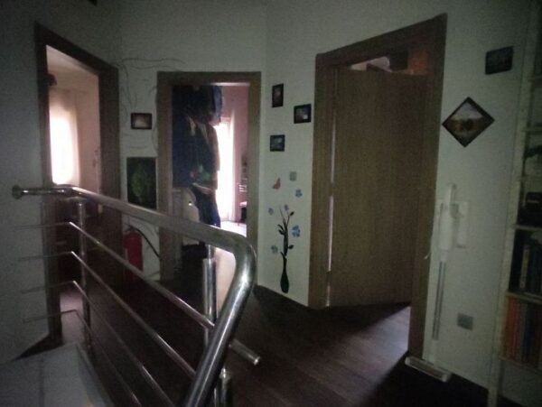 Здание под видеонаблюдением и состоит из трех этажей, наш входит 1 и 2 этаж. На первом этаже кухня-гостиная и ванная комната с душем, балкон 7,5 м2 Второй этаж: 3 спальни и ванная комната площадью 10 м2 и полностью меблирована и еще есть печь-камин и кондиционер. Все окна выглядывают на юг и запад.Также есть 2 паркинг места и личное помещение для велосипеда и других вещей. также есть два входа первый это основной а второй это через балкон первого этажа с паркинга.