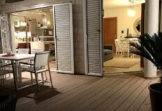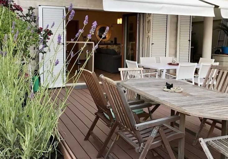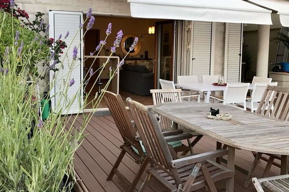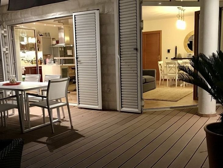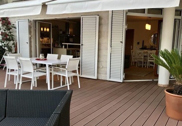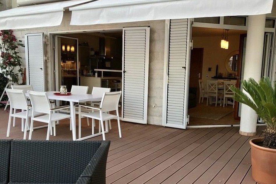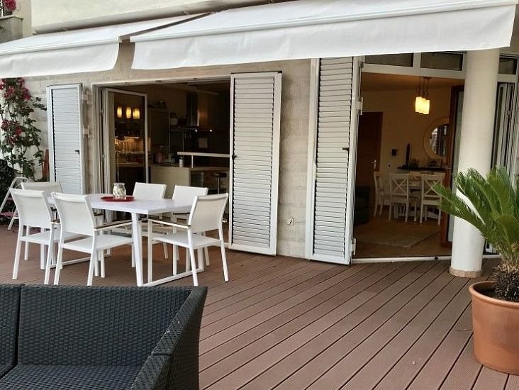 Общая площадь квартиры составляет 87 м2, дополнительно имеется придомовая терраса и участок площадью около 80 м2. Квартира расположена на первом этаже и отлично подойдёт как для постоянного проживания, так и для отдыха или аренды.