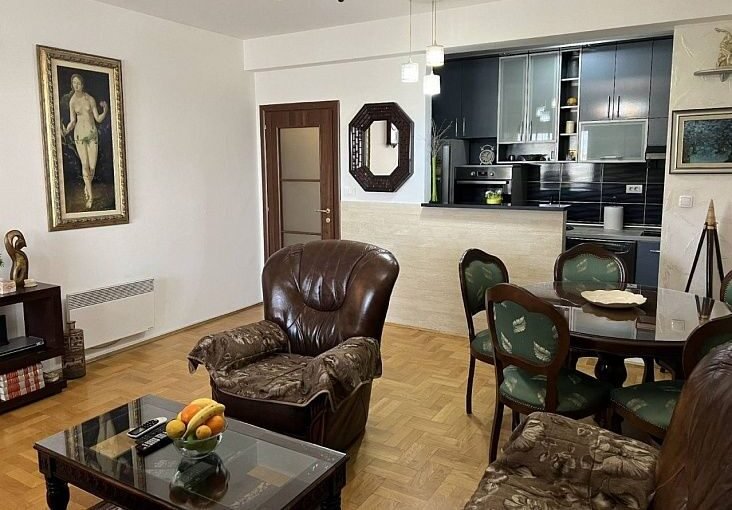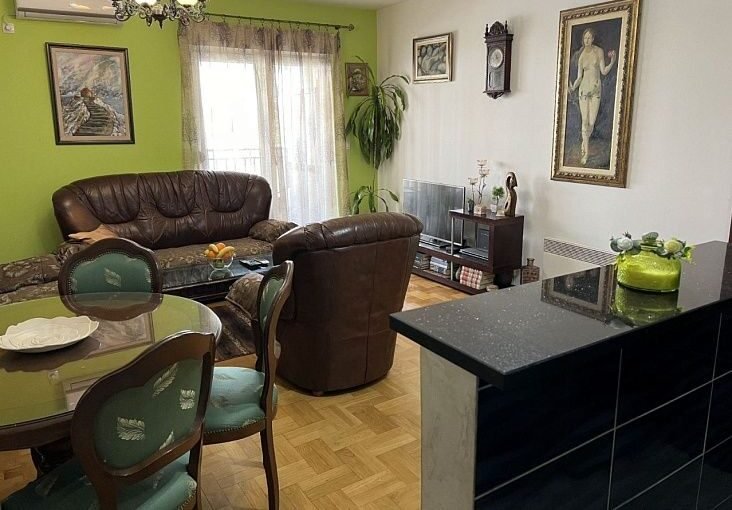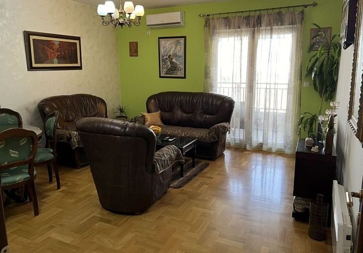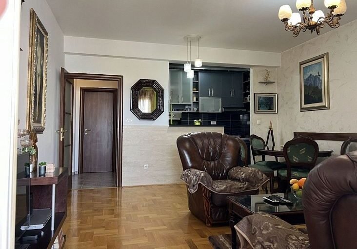 В столице Подгорица район Старый Аеродром продается двух комнатная квартира площадью 75 м2 и ориентирована на обе стороны. В квартире есть гостиная, столовая, кухня, две спальни, два коридора, туалет, ванная комната и три террасы.
