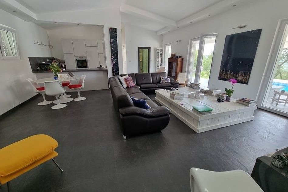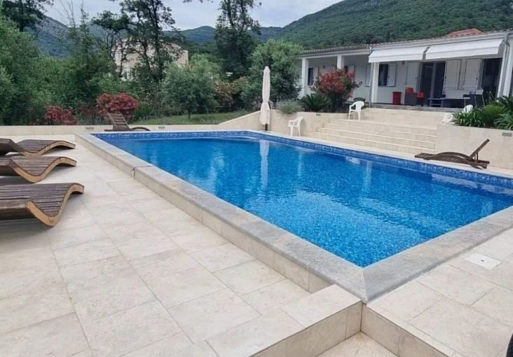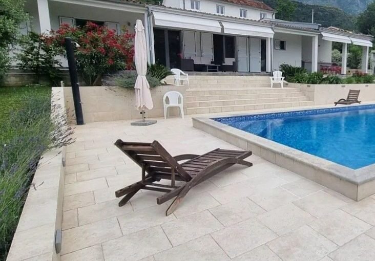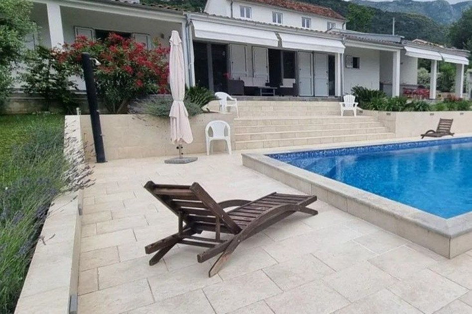 Дом с бассейном в Каваче, расположен на просторном участке и окружён ухоженным садом с оливковыми и персиковыми деревьями. Локация сочетает тишину, природу и удобную близость к побережью. Дом подойдёт для комфортного проживания и отдыха в любое время года. Общая площадь дома составляет 239 м2. Дом одноэтажный и имеет удобную планировку. Внутри размещены четыре спальни и просторная гостиная с современным интерьером. Открытая планировка объединяет полностью оборудованную кухню и обеденную зону. Такое решение создаёт светлое и функциональное пространство. В доме также находятся две ванные комнаты, отдельный санузел и кладовая. Из гостиной есть выход на террасу с летней кухней. С террасы открываются приятные виды на горы и залив. Это место отлично подходит для отдыха и приёма гостей. На участке расположен бассейн и отдельный гостевой дом площадью 53 м2. Он подойдёт для размещения гостей или аренды. Перед домом предусмотрены парковочные места на 3–4 автомобиля. К дому подключены городская вода и канализация. Дополнительно установлена резервная цистерна. До Котора и Тивата можно доехать всего за 10 минут.