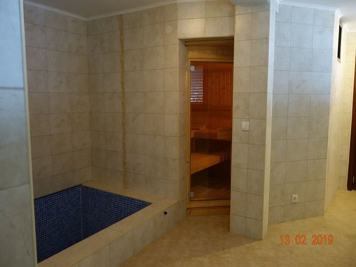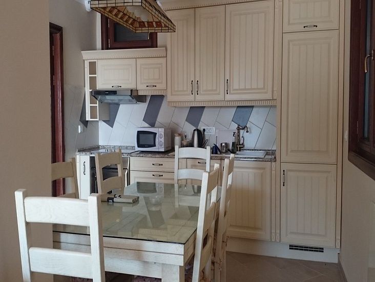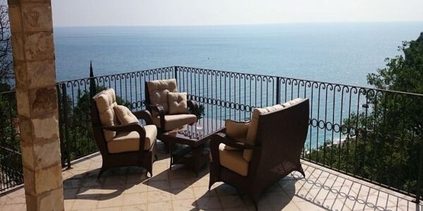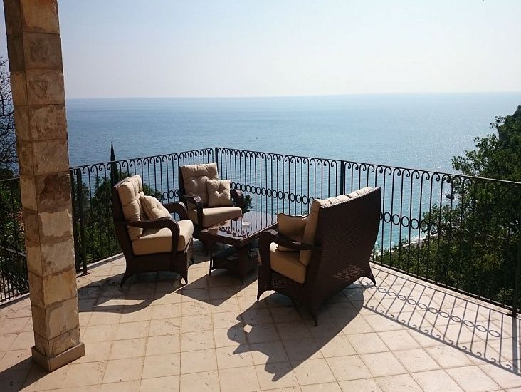 Вилла общей площадью 200 кв.м, 2 жилых этажа плюс цокольный этаж, каждый жилой этаж по 75 кв.м + подвал 40 кв.м. Участок земли возле дома 200 кв.м. В цокольном этаже размещается сауна, небольшой бассейн, санузел. На первом этаже располагается кухня-столовая, гостиная, санузел, кладовая. Из гостиной есть выход на большую террасу с видом на море.