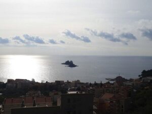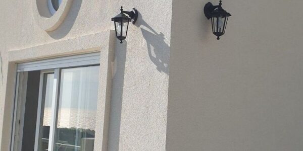 Продается новый симпатичный дом 2021 года постройки площадью 117 кв.м на участке 250 кв.м. Дом состоит из двух этажей, на которых расположены три спальни, гостиная, совмещенная с кухней, два санузла. Захватывающий вид на море имеется из каждой комнаты и с огромной террасы. В доме установлена система подогрева пола, кондиционеры в каждой комнате, панорамные окна в пол с красивым видом. Дом полностью меблирован. Имеется два гаража около 100 кв.м. До моря 1000 м