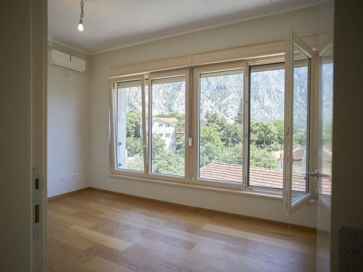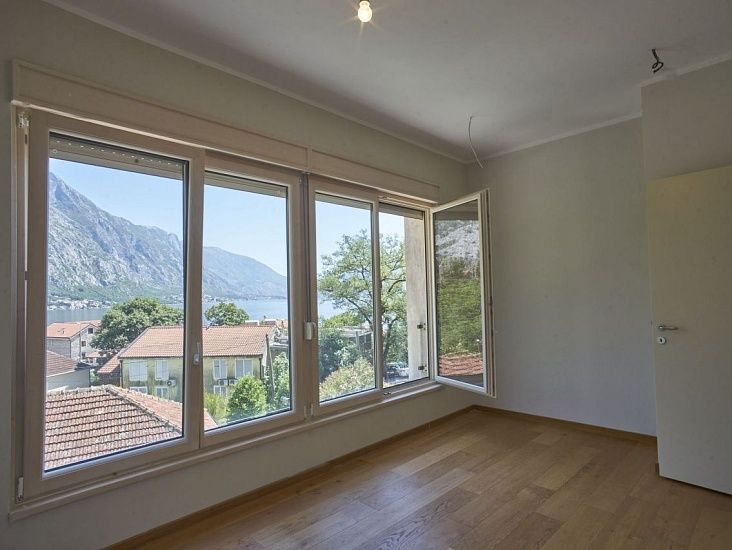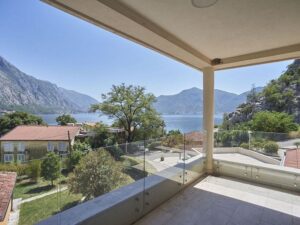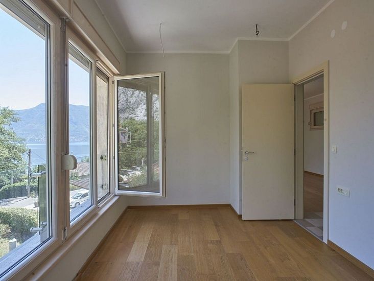 Очень просторная и очень светлая двухкомнатная квартира 64 кв. м находится на 2 этаже нового трехэтажного дома в небольшом уютном комплексе. Из всех окон открывается пленительный вид на Боко-Которский залив и величавые горы. Комплекс имеет свой пляж, паркинг, ресторан. Очень тихое и потрясающе красивое место.