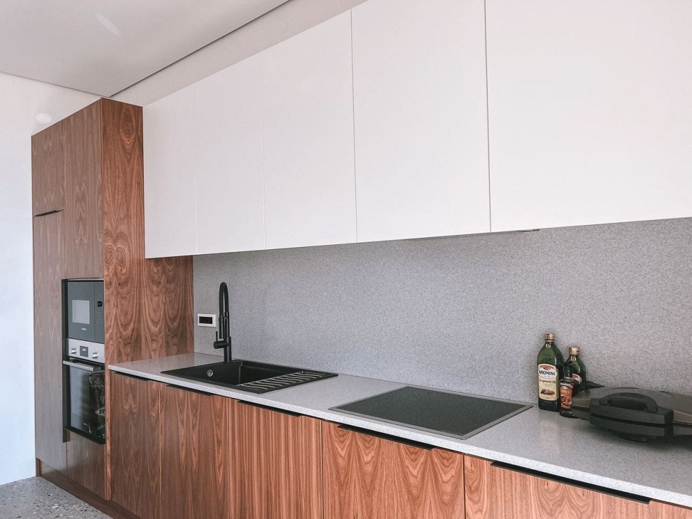 Дом с видом на море Тиват – это современный трехэтажный дом в стиле модерн, созданный для комфортного проживания и отдыха. Дом расположен в жилом комплексе с панорамным видом на Тиватский залив, недалеко от города Тиват. Комплекс занимает участок площадью 23 000 м2 и включает 30 домов, каждый из которых ориентирован на море. Общая площадь дома составляет 220 м2. Площадь земельного участка – 1000 м2. Планировка включает подвал, гостиную с кухней и обеденной зоной, четыре спальни и три ванные комнаты. В доме предусмотрены две террасы и парковочное место. Панорамные окна наполняют пространство светом и открывают красивый вид. Открытая галерея между этажами со стеклянной перегородкой подчёркивает современный стиль дома.