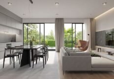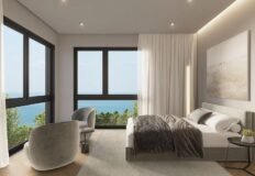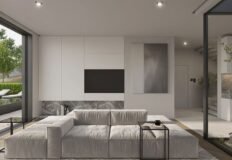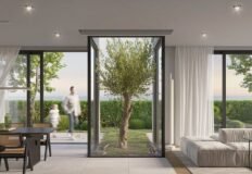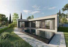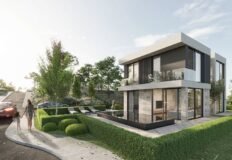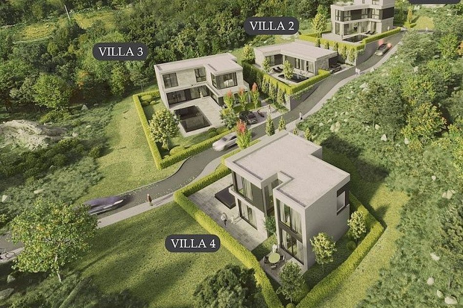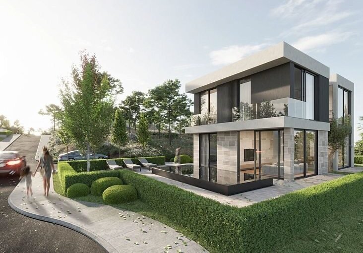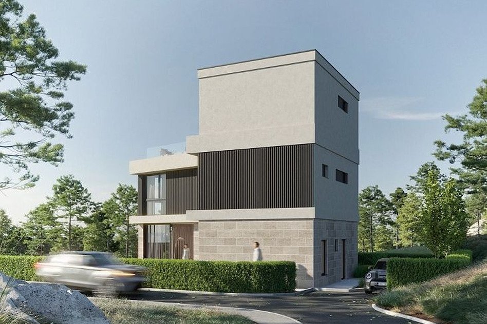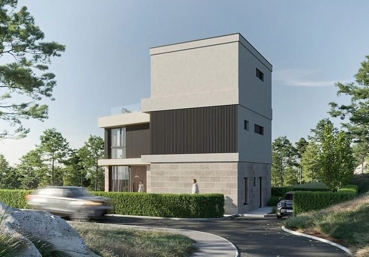Первая вилла площадью 270 м2 расположена на участке 468 м2 и имеет три этажа. На верхнем уровне размещена главная спальня с сауной и выходом на террасу на крыше. Цена – 599 000 евро на стадии строительства.