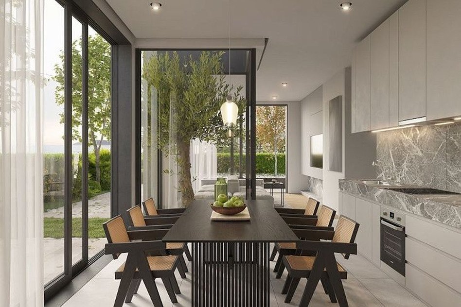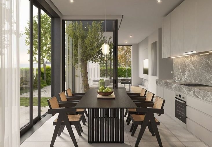 Виллы в Кримовице – это новый закрытый комплекс из четырех роскошных домов, расположенный в живописном районе с виноградниками и оливковыми рощами. Поселок Кримовица известен своей аутентичной атмосферой, тишиной и безопасностью. Проект подойдёт тем, кто ценит комфортное уединение и высокий уровень приватности. Застройщик использует надежные железобетонные конструкции и качественные материалы. В отделке применяют итальянскую и испанскую керамику, а также натуральный полированный камень. Энергоэффективные двери и окна с тройным остеклением и терморазрывом снижают теплопотери и расходы на отопление и охлаждение. Концепция каскадной деревни обеспечивает каждой вилле панорамный вид на море. Дома расположены на разных уровнях, что исключает визуальный контакт между соседями.