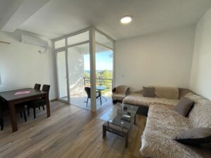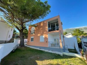 Дом площадью 220 кв м расположен в зеленой части города Сутоморе, в сосновом лесу в 600 метров от моря. Участок площадью 300 кв м благоустроен, имеет зону гриля. Парковка на 4 машины. Дом трехэтажный и фактически состоит из четырех квартир. Цокольный этаж включает в себя летнюю кухню и большую ванную комнату. На первом этаже гостиная объеденная с кухней, спальня, санузел и терраса. Второй этаж состоит из гостиной совмещенной с кухней, спальни, санузла, терраса. и большой квартира-студия с собственной ванной комнатой, кухней и французским балконом.