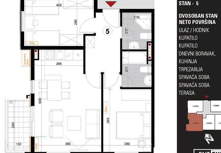 Продаются квартиры в новом доме, который расположен в городе Тиват, Боко-Которской бухты. В пешей доступности вся необходимая инфраструктура: рестораны, кафе, магазины.