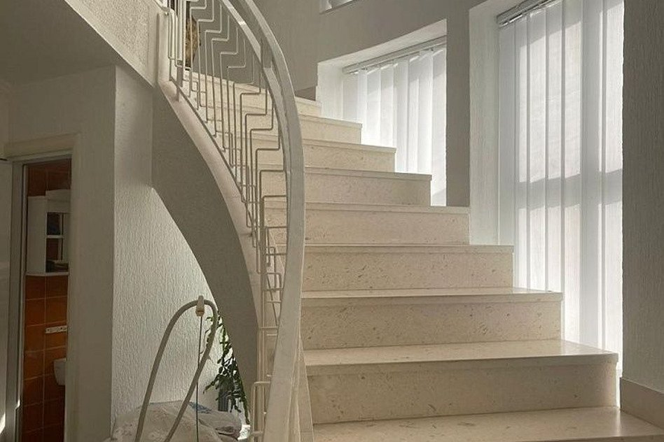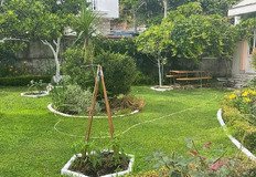 Дом состоит их трех этажей, площадью 189 м2. Земельный участок 494 м2. Расстояние до моря 300 метров без высоких подъёмов. На цокольном этаже кухня, столовая и санузел. На первом этаже кабинет, гостиная комната, спальня и санузел. На втором этаже три спальни и два санузла. К дому пристроена небольшая квартира-студия. Возле дома на въезде есть паркинг под навесом на два автомобиля, просторная мастерская и сарай. Был произведён капитальный ремонт в 2016 году (замена всех окон, жалюзи, двери, кровля, электрика и керамика). Прекрасный сад вокруг дома, много цветов и фруктовых деревьев. Дом огорожен бетонным забором по периметру, есть три входа и двое ворот. С каждой террасы есть вид на море и установлены защитные тенты.