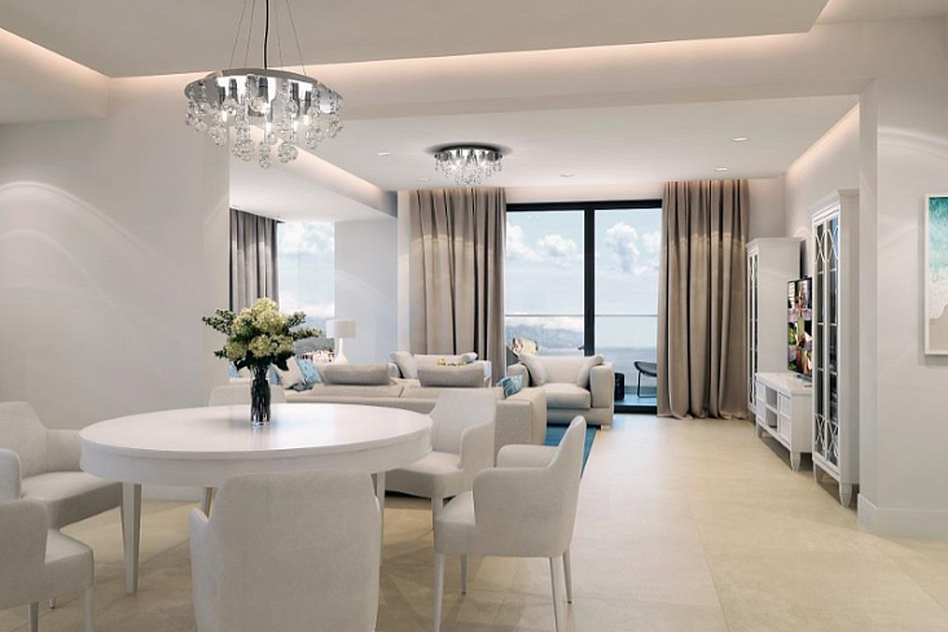 Все апартаменты продаются по системе «под ключ» (готовые к заселению) и будут полностью оборудованы и готовы к заселению и использованию. Они оснащены мебелью и оборудованием в соответствии со стандартами гостиничного бизнеса для отелей 5 звезд. Апартаменты имеют просторные гостиные, роскошные кухни, удобные и тихие спальни, современные ванные комнаты и балконы с прозрачными раздвижными порталами.