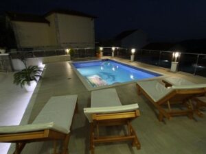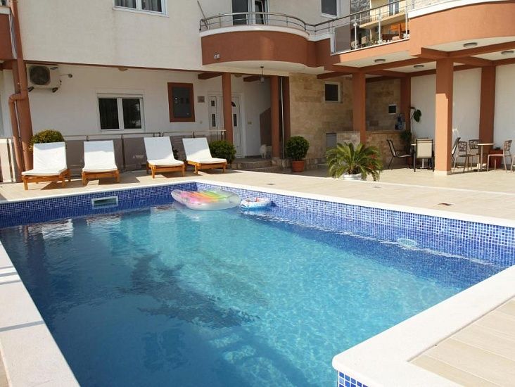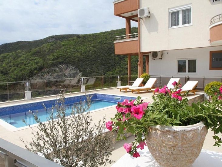 Продается прекрасная вилла площадью 350 квадратных метров в Бечичи, всего в 800 метрах от пляжа. На трех этажах виллы расположены 5 апартаментов, каждый из которых оборудован гостиной, кухней и собственной ванной комнатой с душем. Из квартир открывается вид на море. Вилла находится на участке площадью 450 квадратных метров с садом и барбекю. Также имеется отличный бассейн.