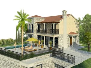 Роскошная вилла с видом на море в стадии строительства в Бечичи. Общая площадь виллы составляет 241 м², из которых 190 м² — жилое пространство в два этажа, 36 м² — гараж и 15 м² — закрытая терраса. Вилла расположена на огороженном участке площадью 485 м² с собственным фруктовым садом и бассейном 3×8 м. Бассейн будет находиться перед фасадом на широкой площадке с зоной отдыха, выложенной плиткой под камень. На первом этаже виллы планируется прихожая, гостиная с кухней и обеденной зоной, гостевой санузел, а также кабинет, который при желании можно сделать спальней. На втором этаже будет три спальные и две ванные комнаты. К вилле проведены вода и электричество; на всех этажах установлена система “теплых полов” и камин в гостиной. Стоимость виллы на этапе строительства — 435 000 евро, а после завершения работ сдача “под ключ” составит 650 000 евро. Возможен расчет в рублях или другой валюте в РФ.