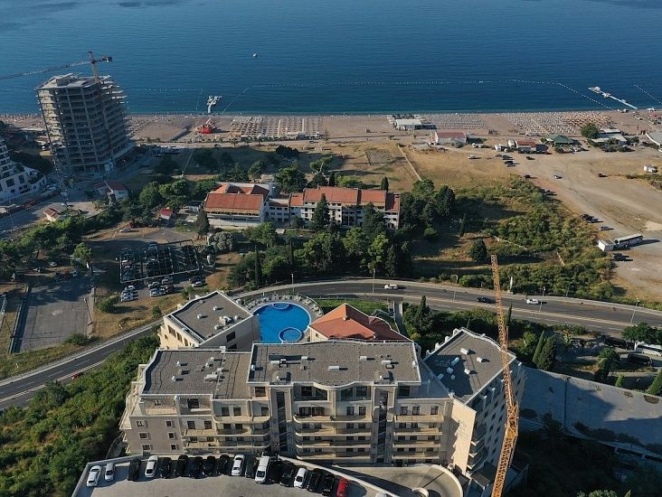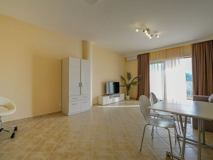 Просторная студия в жилом комплексе с бассейном, рядом с пляжем (всего в 150 метрах) в Бечичи. Квартира имеет площадь 51 кв м она полностью меблирована и готова для проживания. Студия расположена на 4 этаже, в здании есть лифт.