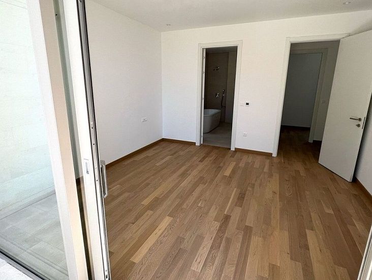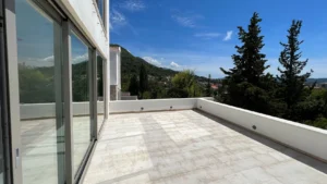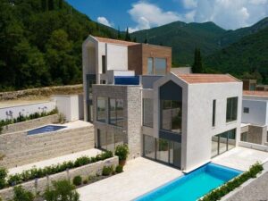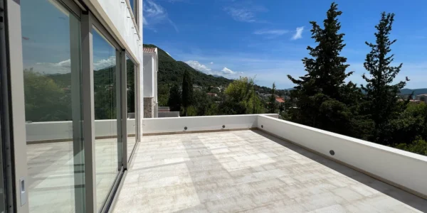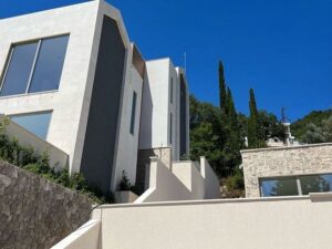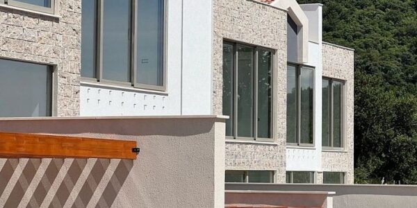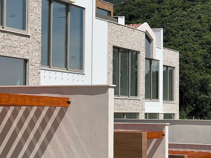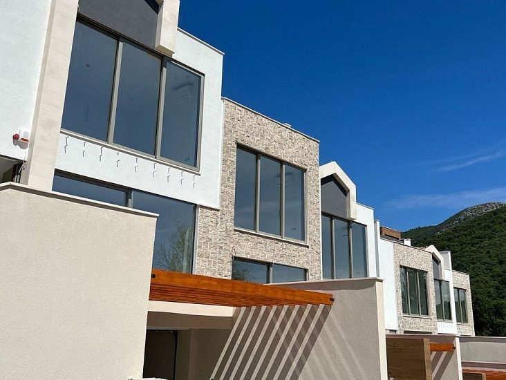 Новый комплекс в Тивате. На сегодняшней день построено 95% всех таунхаусов, которых 9 единиц в комплексе, также в комплексе есть восемь квартир и 4 виллы. Вокруг много зелени и сосен, до Порто Монтенегро всего 1,5 км, а до аэропорта 5 км. Каждый таунхаус имеет двор и бассейн (либо на территории либо на крыше), потрясающий вид на море и гараж. Планировка: просторная гостиная, две спальни, две ванные и гостевой санузел, просторная терраса. Два паркинг места.