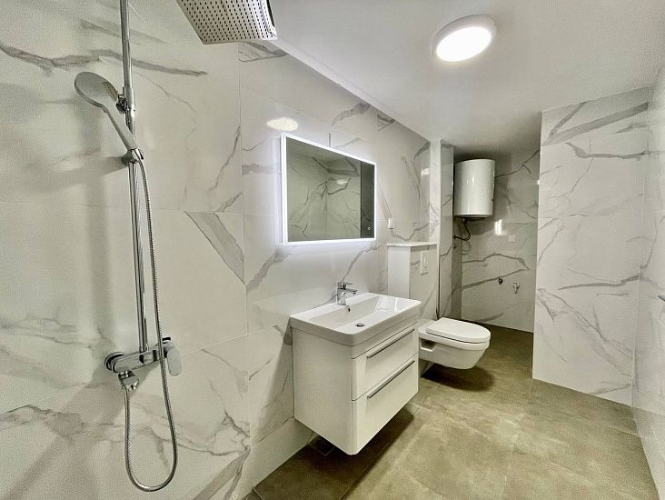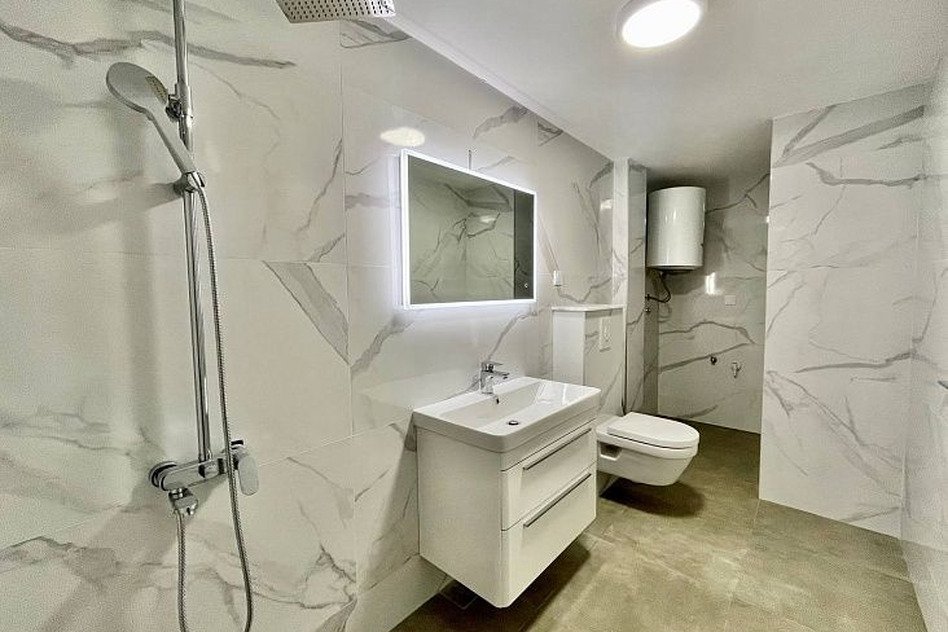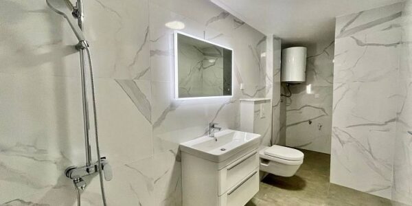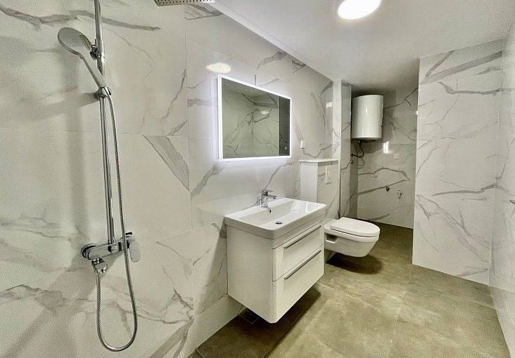 Изюминкой этого жилья является большая терраса, на которую можно попасть прямо из гостиной. С террасы открывается панорамный, завораживающий вид на бескрайнее море, окружающую средиземноморскую зелень и всю живописную Будванскую Ривьеру. Все комнаты полностью укомплектованы качественной итальянской мебелью и оборудованы дорогой, современной техникой.