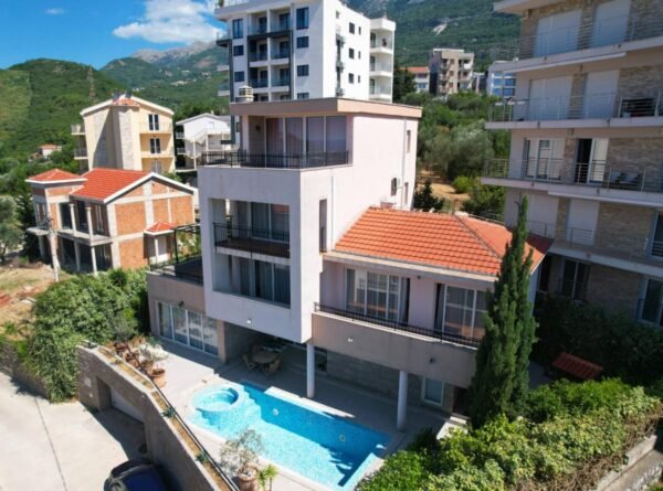 Вилла имеет 4 этажа, включая мансардный, и общую площадь 450 м2, а также дополнительные 100 м2 на мансардном этаже. Она была частично отреставрирована и предназначена для использования в качестве мини-отеля на 10 номеров, а чердак можно приспособить под 11-ю спальню или комнату для персонала, установлен лифт. На первом этаже планировалось открыть ресторан с кухней и выходом на террасу ресторана. На территории участка есть мангал и место для лежаков и зонтиков. Из каждого номера открывается завораживающий вид на Боко-Которский залив.