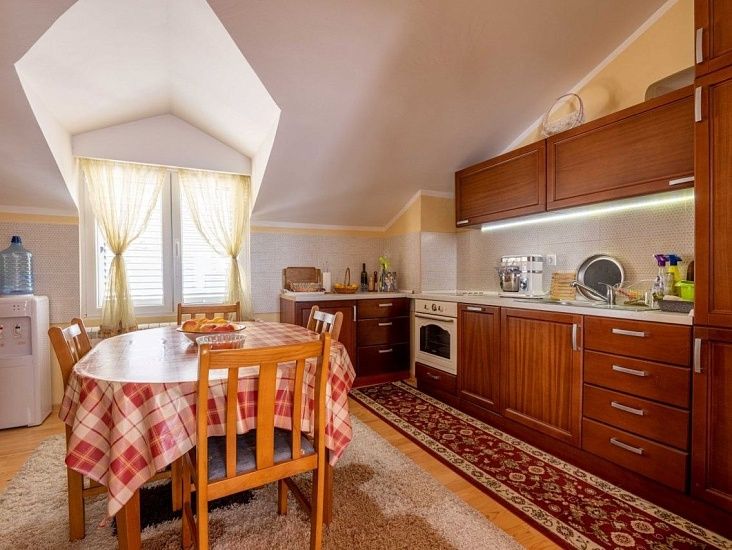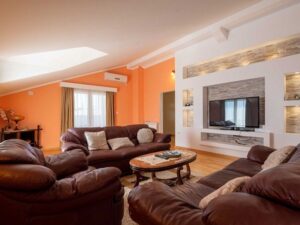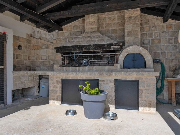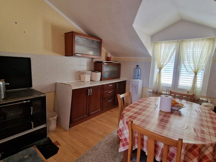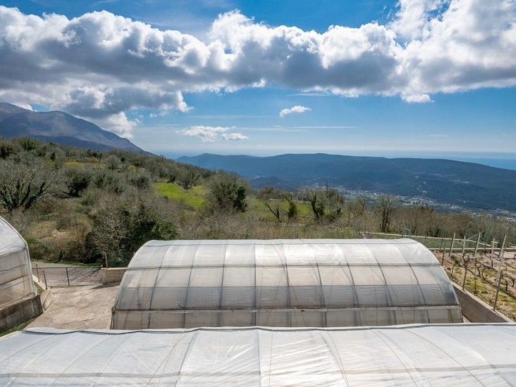 Загородная усадьба с большим главным зданием и вспомогательными помещениями, на большом земельном участке площадью 4775м2. Главный дом площадью 584 м2 состоит из 5 спален и 2 ванных комнат, большой гостиной со столовой и кухней, а также террасы. Кроме того, он включает в себя отдельную меблированную квартиру с 2 спальнями на верхнем этаже и панорамной террасой. Земельный участок общей площадью 4775м2 состоит из 3 участков. Согласно градостроительному плану на всех трех участках разрешено строительство жилых и вспомогательных построек. Все три участка можно рассматривать как отдельные единицы, и вся недвижимость окружена каменной стеной. В жилом помещении используется автоматическое пеллетное и электрическое центральное отопление, а также каменный камин. Все номера оборудованы кондиционерами. Помимо всех помещений и содержимого для производства на ферме, во вспомогательном здании имеется отдельная меблированная квартира-студия площадью 65 м2, складские помещения для дров, пеллет и сельскохозяйственного инвентаря, помещения для производства вина и дистилляции бренди, меблированная мясная лавка, подземный винный погреб и коньячный погреб, а также помещение для сушки и холодного копчения мяса. На одном из участков расположена хорошо оборудованная птицефабрика общей мощностью 1000 голов, выпущенная на огороженную территорию площадью 2145 м2. И эту часть собственности можно переоборудовать в жилое или туристическое использование.