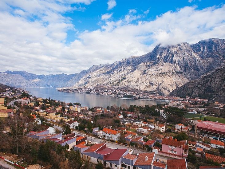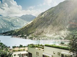 Жилой комплекс в Черногории на берегу Которского залива Адриатического моря.